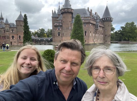 📸 Foto: drie generaties Olland – Quirine (Gen Z), Wouter & Annegriet (fitte 85-plusser) – bij Kasteel de Haar.