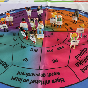 Interactieve opdrachten, veel dialoog in wisselende teams d.m.v. DISC kaartspellen, Lego Serious Play en een actieplan.